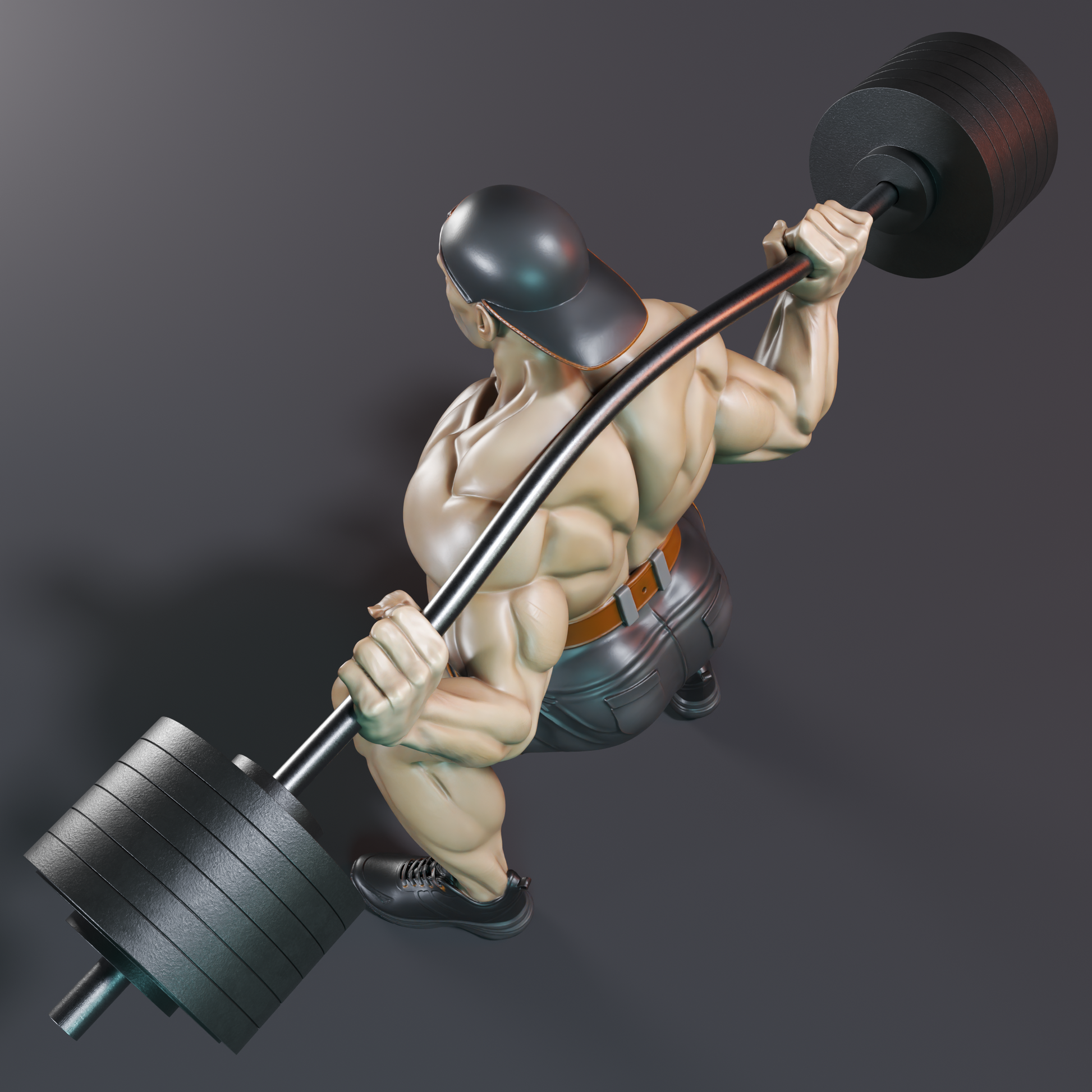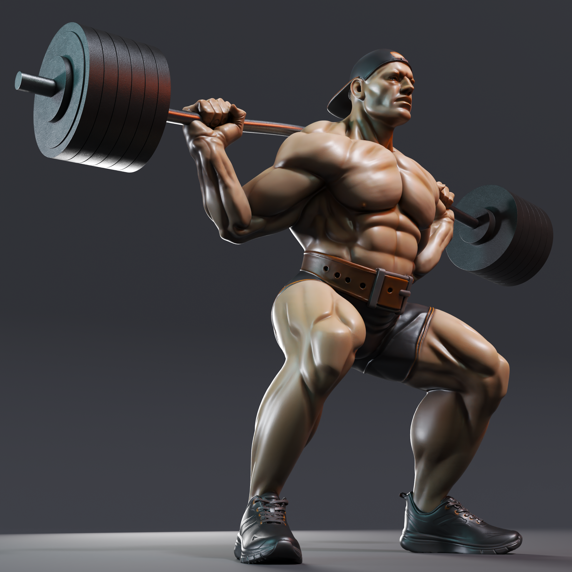 Ultra Muscular Bodybuilder Squat Pose Powerlifter Fitness Statue STL