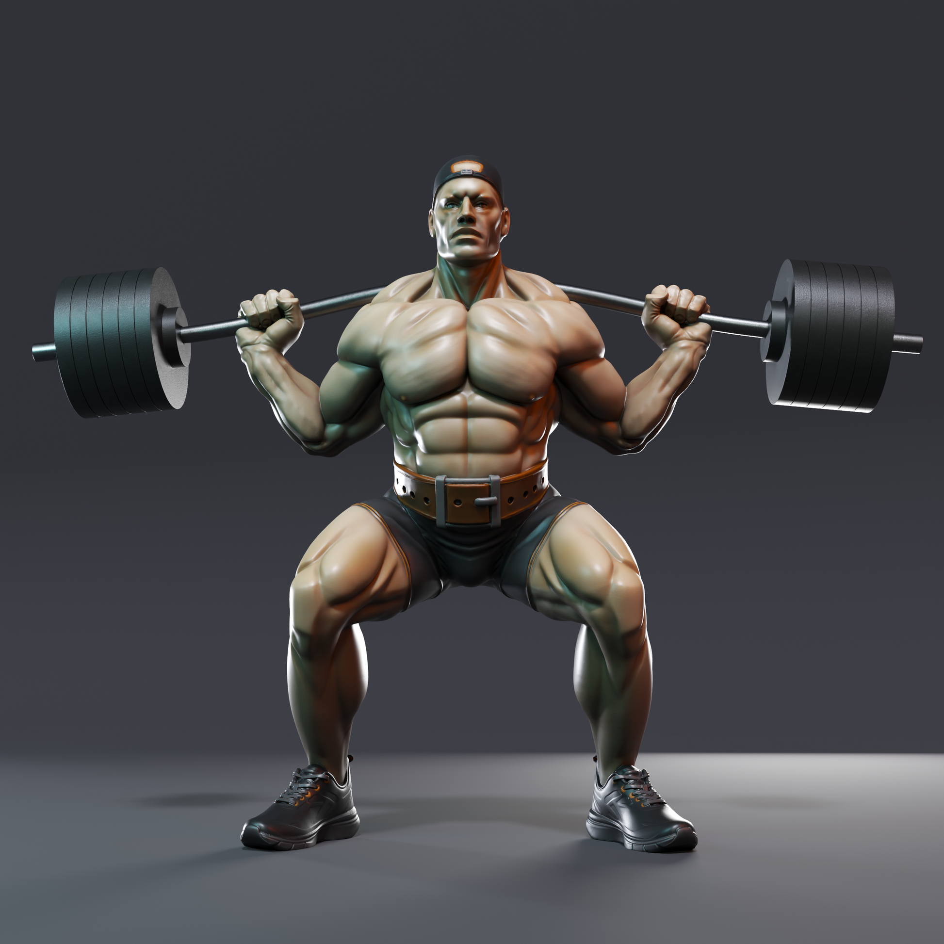 🟢 Ultra Muscular Bodybuilder Squat Pose Powerlifter Fitness Statue STL
